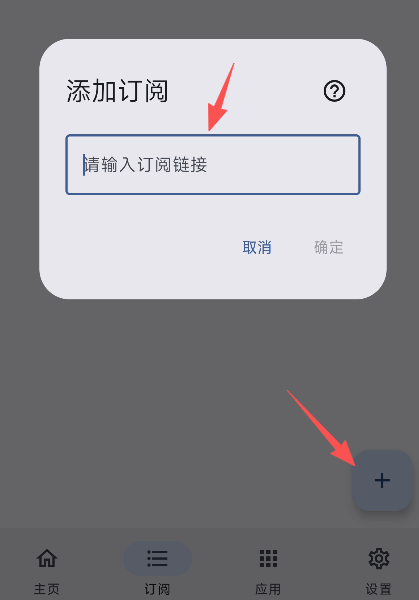 3、点击右下角的加号,然后输入订阅规则(规则地址在公众号内回复数字获取喔)